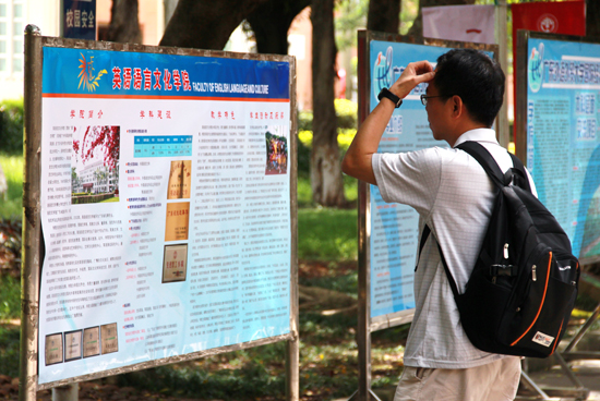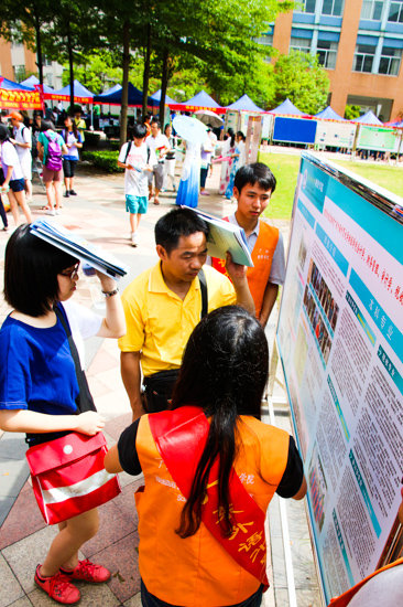 六月的尾巴上,八点是旭日高挂的节奏,阳光明媚的早晨里,广东外语外贸大学2013年开放日拉开了序幕(主场在南校,分场在北校)。广外的校园开放日紧跟着夏至。夏至,鹿角解,蜩始鸣,半夏生,怎么看都是生命开始蓬勃起来的时节。走进广外,考生家长们都会发现这里可亲可爱,他们在校园的各个角度驻足,抱着各种心情,感受这里的一草一木。