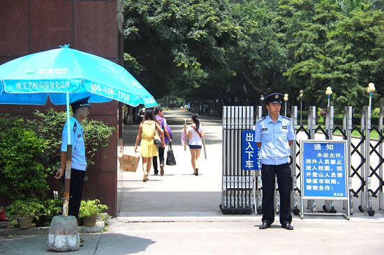 谈起保卫处,商英学院大一的张同学向我们讲述了一件发生在军训时候的事。烈日炎炎的中午,大家都已经回到宿舍休息,张同学在空无一人的操场急得团团转。因为走路时不小心,她把饭卡、银行卡、手机都掉进了排水沟里。保卫处的一位工作人员刚好巡逻经过,看到焦急的张同学立马表示可以帮忙,顶着烈日他找来钳子,撬开排水沟,找到了张同学的东西。当张同学询问他的名字时,他腼腆地笑笑说:“东西找到就好了,名字不重要”。一个个默默无闻的保卫人员组成了广外坚固的安全保障部门—保卫处。也许多数同学无法具体说出保卫处的具体职责,却对一个个活跃在校园各个角落的保安“似曾相识”。