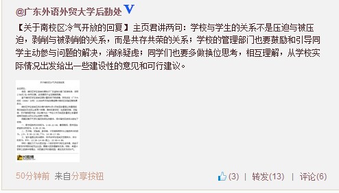 后勤处在微博上与学生交流