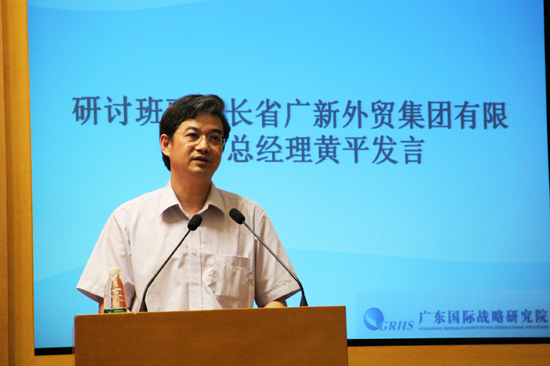研讨班副班长、省广新外贸集团有限公司总经理黄平在会上发言。他表示本次研讨班内容丰富,观点新颖,思想深刻,具有前瞻性,对推动经济结构调整,实现转型升级具有指导意义。本次研讨班,作为推动省经济转型发展合作交流平台,加强了学员与专家学者以及学员间的交流,同时让学员对加快经济转型的紧迫性有了更深刻的体会。最后,他勉励各位学员学以致用,将专家学者的真知灼见转化为推动经济结构调整的新思路,在各自的工作领域中创造性地开展工作,进一步发挥积极作用。