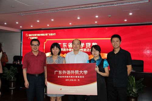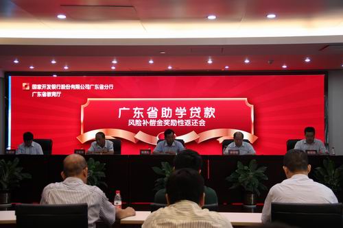 本网讯 5月30日,广东省助学贷款风险补偿金首次返还会议在国家开发银行广东省分行多功能会议室举行。国开行广东省分行行长吴德礼、广东省教育厅副厅长李学明及全省20所高校代表参加了会议。我校党委副书记卢景辉出席了会议。