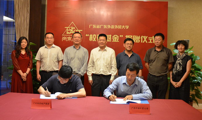 在捐赠仪式上,郭泽伟对叶牛平区长出席并见证捐赠仪式表示感谢。郭泽伟表示,历经十六年的发展,尚东集团已经成长为一个感恩、团结与进取的充满生命力的企业。企业业绩的取得,得益于其独有的品牌进取精神,即同心同创,共赢共享,不断超越自我,推动城市、时代发展的进取精神;同时也得益于企业和企业领导者的社会责任心和爱心。郭泽伟指出,广外是一所国际化特色鲜明的高校,希望通过此次两家单位牵手,进一步推动中国企业“走出去”,取得企业与学校共同发展的良好局面。