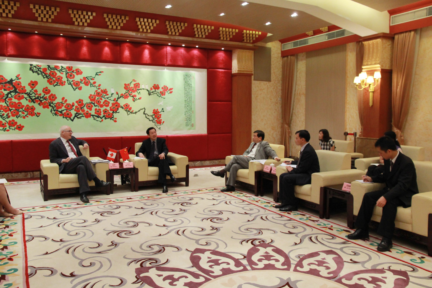 加拿大研究中心研究员程永林代表中心向麦道伟介绍了加拿大研究中心的发展情况、研究领域以及研究方向。此外,他表示,中心盼望与更多加拿大的大学加强合作。