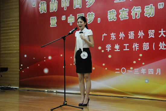 本网讯 4月26日下午,“我的中国梦”主题教育活动表彰大会暨“中国梦,我在行动”演讲比赛决赛在北校区图书馆报告厅举行。演讲比赛的一等奖分别由翻译学院的王蕙仪和国际学院的古宸奇摘得。随着“中国梦,我在行动”主题演讲比赛的结束,“我的中国梦”主题教育活动圆满落幕。