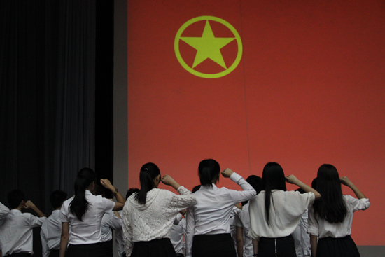 表彰结束后,一批新入团的学生面向团旗庄严宣誓,老团员重温入团誓词。全体学生合唱共青团之歌,“我们是五月的花海,用青春拥抱时代。我们是初生的太阳,用生命点燃未来。”,在激扬的歌声中,纪念五四运动94周年暨表彰大会缓缓落下帷幕。