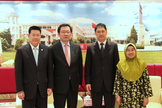 我校党委书记隋广军、校长仲伟合在北校区行政楼贵宾厅会见了韩国东西大学张济国和马来西亚玻璃市大学扎瑞达·穆德·扎因一行。隋广军表示,亚洲大学校长论坛使相关各校交往日益密切,各学校“国际化”的教学理念相通,该论坛是各学校的合作机制。我校作为常设秘书处所在学校,一定会履行职责,发展学校间合作,推进各学校的交往。