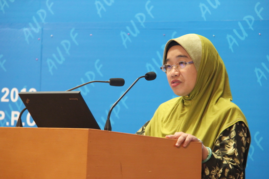 随后扎瑞达·穆德·扎因上台致辞并介绍了下届论坛筹备情况。她谈道,教育能够改变我们的思维方式、生存方式以及人际沟通方式。事实上,亚洲大学校长论坛是一个大平台,在这个平台上,是教育把宏大的亚洲大陆联系在了一起。去年,亚洲大学校长论坛的主题是 “亚洲时代:建立亚洲大学的合作网”;承接去年,“亚洲变革的领导力:机遇与挑战”成为了今年论坛的主题。