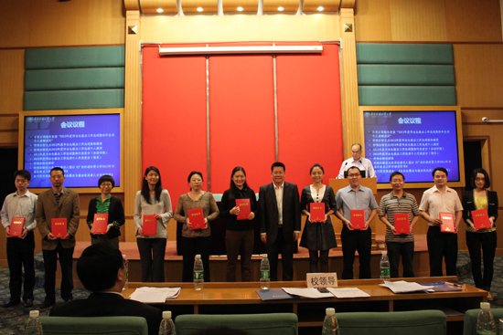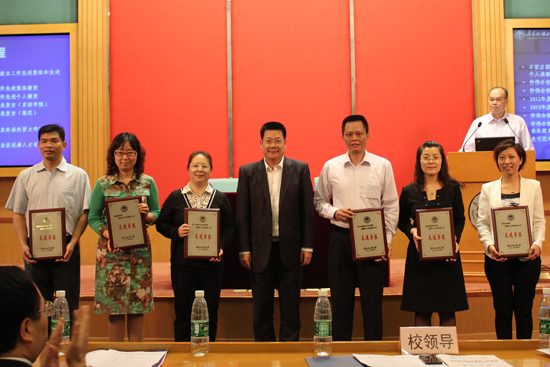 我校副校长石佑启宣读“2012年度毕业生就业工作先进集体和先进个人表彰决定”,仲伟合为获奖集体与个人颁奖。