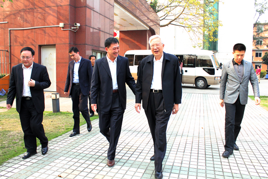 罗豪才听取了隋广军代表学校就我校近几年发展情况进行的汇报,隋广军重点围绕我校重大科研项目的建设情况与取得的成就、我校发展历史、校区建设、学科布局、科研建设、招生情况、学生就业等方面作了简要介绍。隋广军谈到,去年我校参评省重点学科评估的7大学科全部通过,通过率100%,名列前茅。去年,我校还取得了教育部“强国强省”方面的重大课题研究项目,并建设2011协同创新中心。此外,他还介绍到,我校招生保持在每年5000本科生的规模,教学质量保障,学生就业前景良好。去年,我校被国务院评为“就业先进单位”。