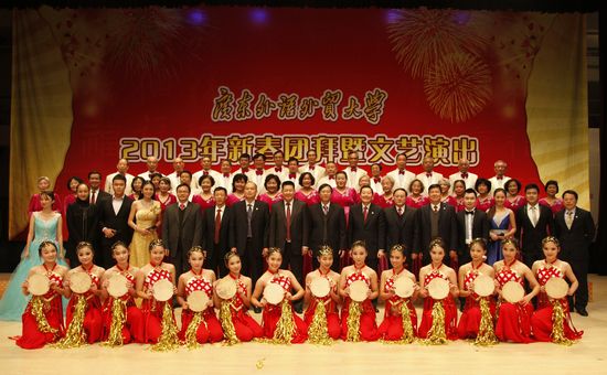 由党委宣传部、校工会、艺术学院主办的2013年新春团拜暨文艺演出活动隆重举行。校长仲伟合,校党委副书记陈建平、卢景辉,副校长方凡泉、许国彬、顾也力、刘建达、石佑启、陈德萍、何传添等校领导到场向全体教职工及离退休老同志致以新春的祝福。