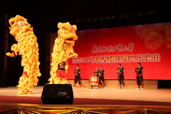 由校工会组织的抽奖环节让广大教职工享受视听盛宴之余还收获丰富的奖品。最后,在热闹喜庆的《欢聚一堂》歌舞中,2013年新春团拜暨文艺演出落下帷幕。