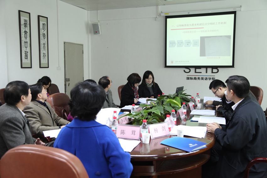 巡视组一行还对商英学院进行了考察。商英学院党委书记车小真对该院贯彻落实党风廉政建设情况进行了汇报。车小真说道,近年来,随着我校管理重心的下移,学院拥有了更大的管理权,但商英学院以明晰责权为要求构建了层次分明的工作机制,以制度建设为基础规范行政管理活动,以院务公开为核心推进民主监督,以主题教育为主营造了风清气正的氛围。在巡视组咨询环节,商英学院郭桂航就学院党政联系会议的召集、学院科研经费使用以及学院创收经费的使用等问题向巡视组进行了汇报。