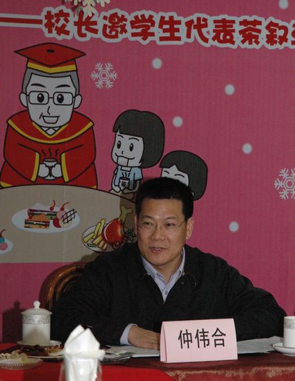 仲伟合首先表示,校长与学生代表茶叙活动自创办以来,受到学校领导和学校各单位高度重视,已成为颇具我校特色的民主管理方式,并深受同学们的欢迎和支持。他对今天来参加茶叙活动的同学们表示热烈的欢迎,并感谢同学们牺牲宝贵的期末复习时间来为学校教育事业的科学发展建言献策。