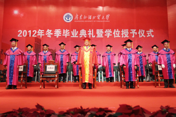 本网讯 “做一朝广外人,走一段广外路,于你们,于我们,都是一生无法磨灭的印迹。”12月27日下午,我校2012冬季毕业典礼暨学位授予仪式在北校区云山会堂隆重举行,这是一次属于377名毕业生(13名博士研究生、50名硕士研究生和314名本科生,本科生包括155名成人教育学生和134名自学考试学生)的盛会,他们将满载着母校的祝福踏上新的征程。