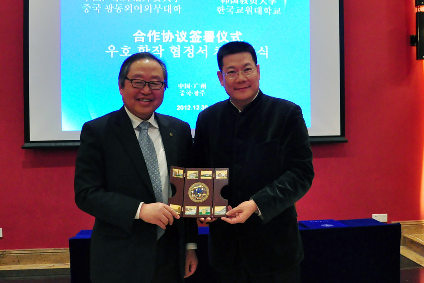 2012年我校已与国外多所大学签署了校际合作协议。会谈中,仲伟合笑称,与韩国教员大学的合作签约将是他在2012年签署的最后一个校际合作协议。2013年,在教育国际化的背景下,两校将通过合作谋求更多的发展。会谈后,双方还互赠了纪念品。