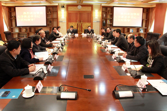 本网讯 12月25日下午,暨南大学党委书记蒋述卓一行来我校调研党建工作。我校党委书记隋广军、副书记卢景辉等参加了交流座谈。