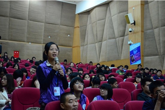观众交流环节,何伯宜热心解答同学们的疑问,给予了与会的同学们很多有关于创业的建议,并分析了留学市场的发展前景,表达了对我校学生的寄望。