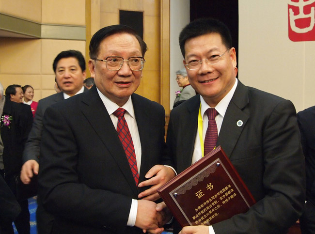 唐家璇、李肇星为获得翻译事业特别贡献奖的个人颁奖