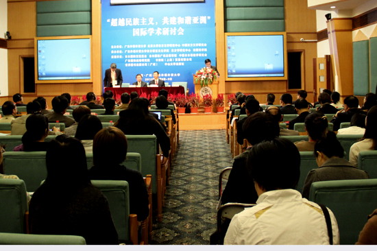 本网讯 12月8日上午,以“超越民族主义,共建和谐亚洲” 为主题的国际学术研讨会开幕式在我校北校区国际会议厅召开。北京日本文化中心副所长高桥耕一郎、日本驻广州总领馆副总领事中原邦之,我校副校长许国彬、东方语言文化学院院长陈多友以及来自海内外的170余位专家学者出席了此次开幕典礼。本次研讨会由我校、北京大学东方文学研究中心与中国东方文学研究会主办,我校东方语言文化学院、东方学研究中心与南国商学院承办。