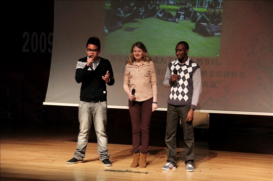 三位留学生上台展示