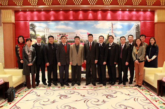 本网讯 12月3日中午,由澳门理工学院院长李向玉带领的访问团继今年4月首访我校后再访我校,进一步与我校商讨相关合作事宜。我校校长仲伟合、副校长方凡泉、西语学院院长郑立华、高级翻译学院院长平洪、图书馆馆长伍方斐等在北校区行政楼贵宾厅接待了李向玉一行。