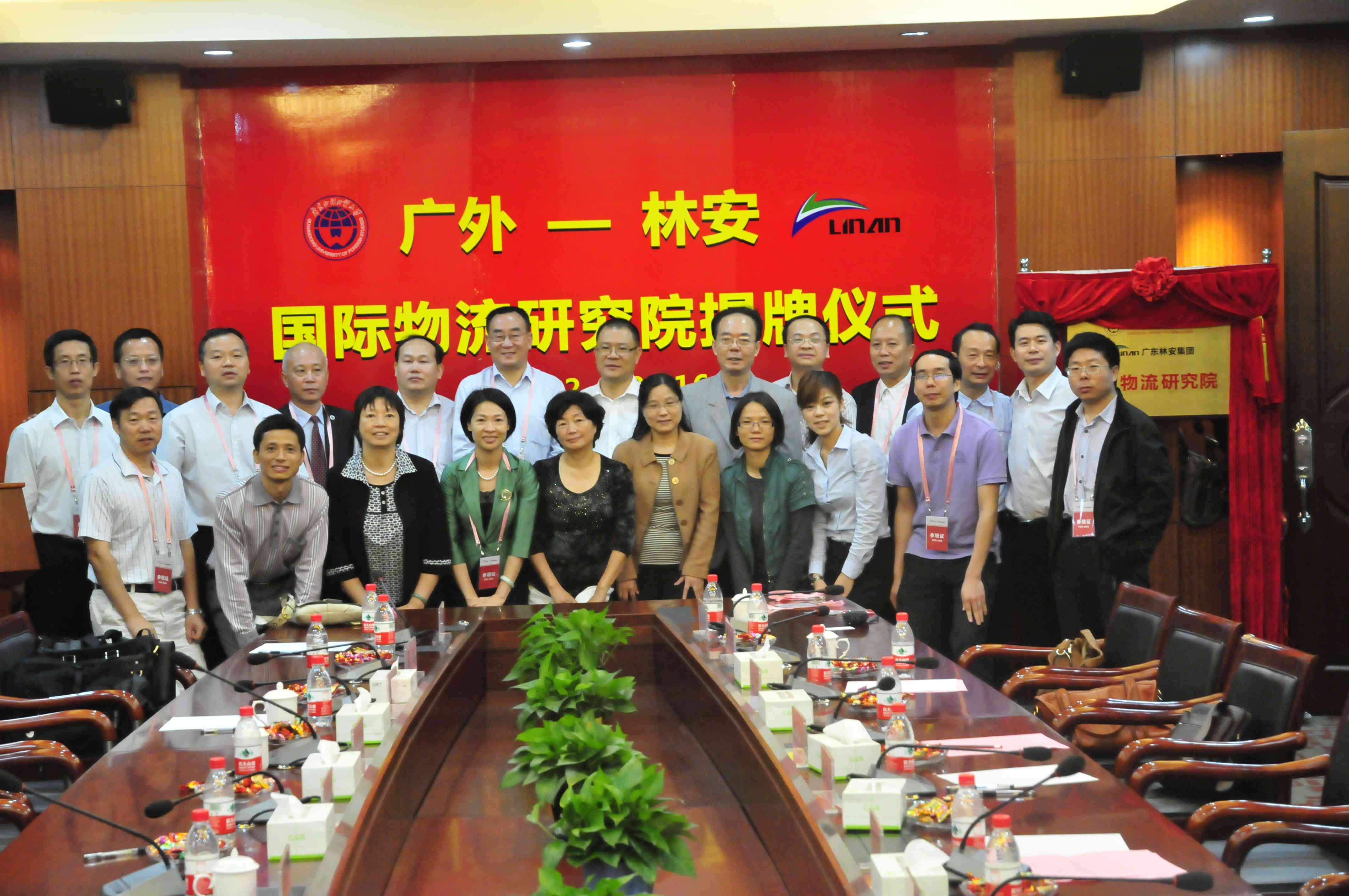 本网讯 11月16日上午,“广外-林安国际物流研究院”揭牌仪式在广州林安物流园隆重举行。我校副校长顾也力,科研处处长阳爱民,管理学院院长钟育赣,党委书记朱珍葶和我校师生代表到林安物流园参加了此次揭牌仪式。 林安集团董事长李金平、副董事长李清林、总经理余栋梁,广州市交委处处长林殿盛、广百集团副总经理黄荣新、广州市商业总会副会长骆炳等相关领导出席了该仪式。