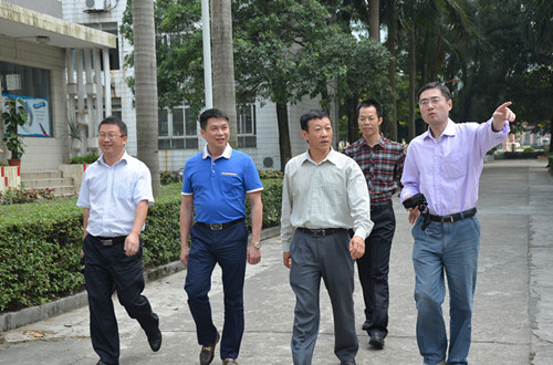 许国彬陪同程雷(右一)、陈蔚荣等参观校园