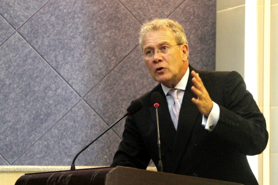 以《秘鲁的西班牙语(El Castellano del Perú)》为讲座题目,以幽默的方式为我校师生讲解了“西班牙语的进化”、“西班牙语和美洲”以及“在秘鲁的西班牙语”等问题。讲座由方凡泉主持。