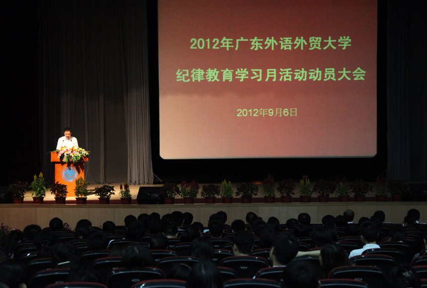 本网讯 9月6日下午,我校2012年纪律教育学习月活动动员大会在北校区云山会堂举行。校党委书记隋广军对2012年纪律教育学习月活动进行了动员部署,动员大会由校长、党委副书记仲伟合主持。校领导、全校教职员工共约1300人参加了会议。
