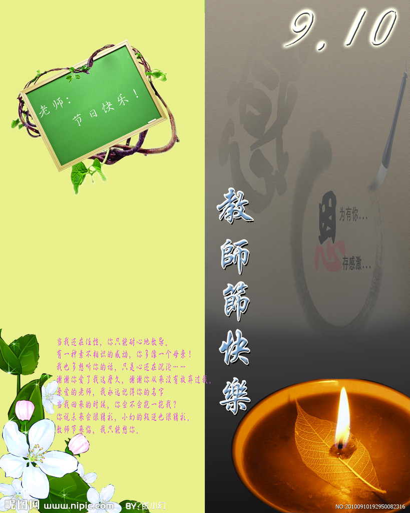 编后语 回首过去,我们要向亲爱的老师道一声谢谢;把握现在,我们要秉承老师所传授的知识和品格,走好以后的每一步。当教师节的钟声敲响,班长喊一声“全体起立,老师好”,全班同学“老师好”,这或许就是老师们今年收到的最甜蜜的教师节礼物了。
