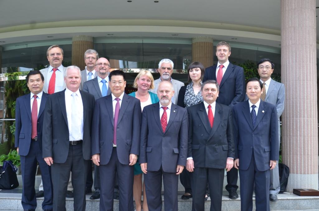 本网讯 8月23日下午,德国维施马应用科技大学校长诺伯特·格鲁瓦尔德(Norbert Grünwald)、波兰驻广州总领事谢宾(Mr. Krzysztof Ciebien)、波兰什切青大学副校长安德烈·维特科夫斯基(Andrzej Witkowski)、董事会主席尤杰纽什·克兹尔(Eugeniusz Kisiel)等一行12人访问我校。我校仲伟合校长在北校一楼贵宾厅亲切会见来宾。陪同会见的有副校长方凡泉、国际合作与交流处处长焦方太、留学生院院长梁学宏、西语学院副院长刘齐生、MBA中心副主任曾驭然等。
