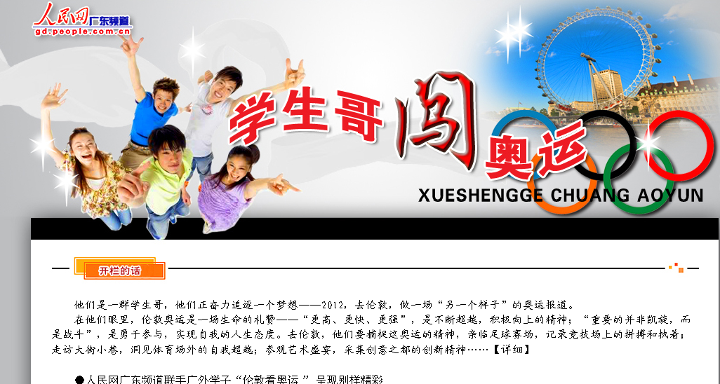 附:人民网广东频道“学生哥闯奥运”专栏