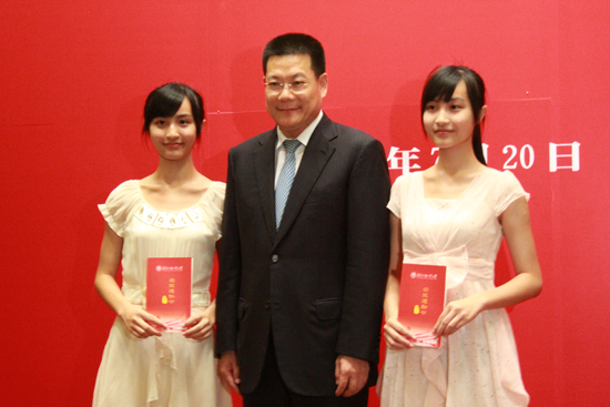 仲伟合为一对双胞胎姐妹颁发录取通知书