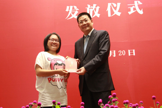 综合考虑交通条件等因素后,广外从56个专业随机抽取56名新生代表接受仲伟合校长亲自颁发的录取通知书。除金榜提名的荣耀闪亮外,人文关怀之情也同样让人感动。尤其值得一提的是今年报考我校的新生中,有一位家境比较困难,但却热心公益事业的刘同学。通过自身的刻苦学习,她最终考上东语学院。了解实际情况后,我校为刘同学预先提供勤工助学岗位。在仲伟合为刘同学颁发录取通知书之后,卢景辉为其颁发我校云山咖啡屋员工聘书。