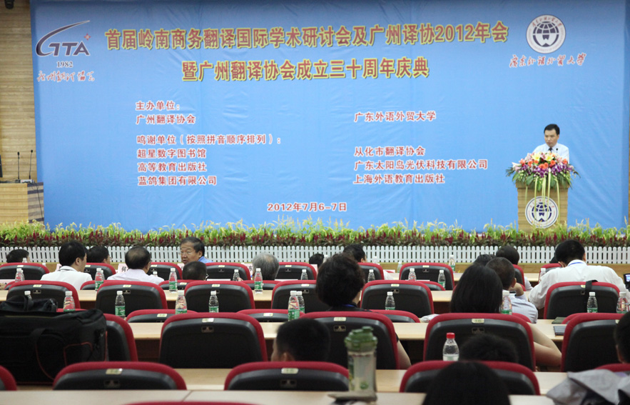 本网讯 7月6日至7日,首届岭南商务翻译国际学术研讨会及广州翻译协会成立三十周年庆典在我校隆重召开。出席本次活动的有广州翻译协会会长、我校校长仲伟合,广州翻译协会原会长、我校原校长黄建华,广州市科学技术协会学术部部长何志勤,中国翻译协会副会长、《中国翻译》编辑部主任杨平以及来自两岸四地翻译界的专家学者。译界精英齐聚广外,共同庆祝广州译协三十周岁生日,同时在该领域展开了广泛的交流与讨论。