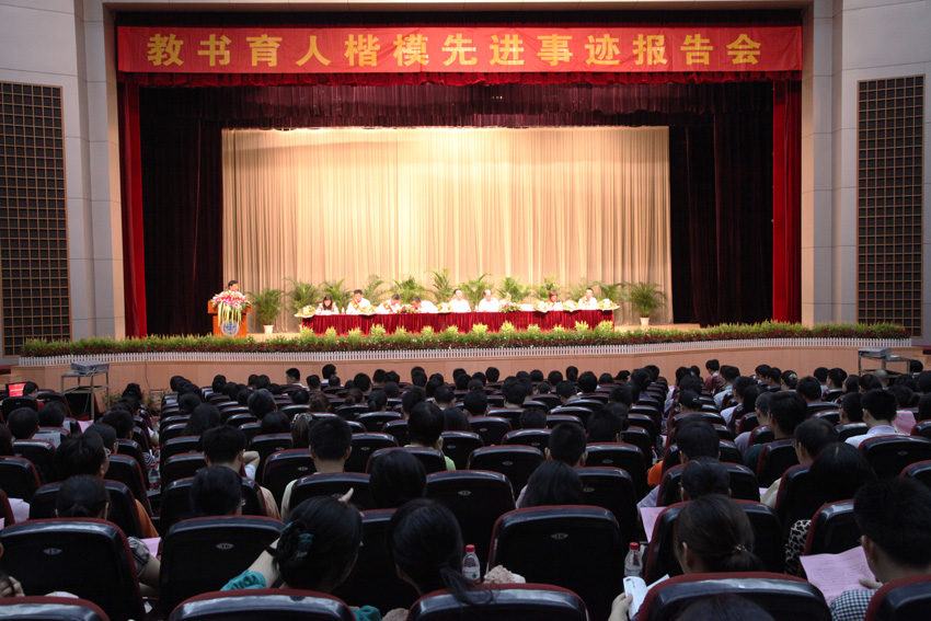 又讯 7月3日,教书育人楷模先进事迹报告团职业教育分团示范宣讲活动专场报告会在我校北校云山会堂隆重举行。报告会由教育部和光明日报主办、广东省教育厅承办,由省教育厅副厅长李学明主持,来自我省70多所高等职业院校、中等职业学校、技工学校的教师、学生及家长代表800多人聆听了报告会。徐英杰等6位教书育人楷模讲述了自己在平凡的工作岗位上做出的不平凡业绩。