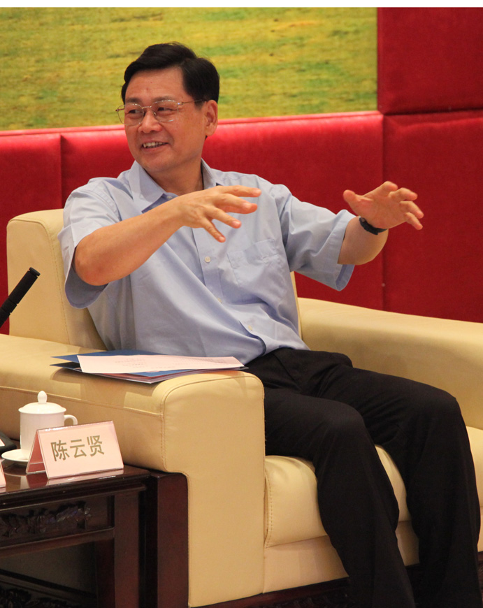 陈云贤向报告团介绍并分析了当前广东经济社会发展情况。他认为,目前广东的工业化正处在从工业化后期向后工业化初期转化的阶段,企业成本不断增高等问题日益凸现,大多数产业链条尚处于中低端层面,缺少对核心技术的掌控等。如何解决好企业成本不断递增、牢牢掌握核心技术等难题,用高新技术融合传统产业,大力培植新兴产业,发展第三产业,这是当前广东政府、企业以及广大民众面临的重大课题和努力方向。