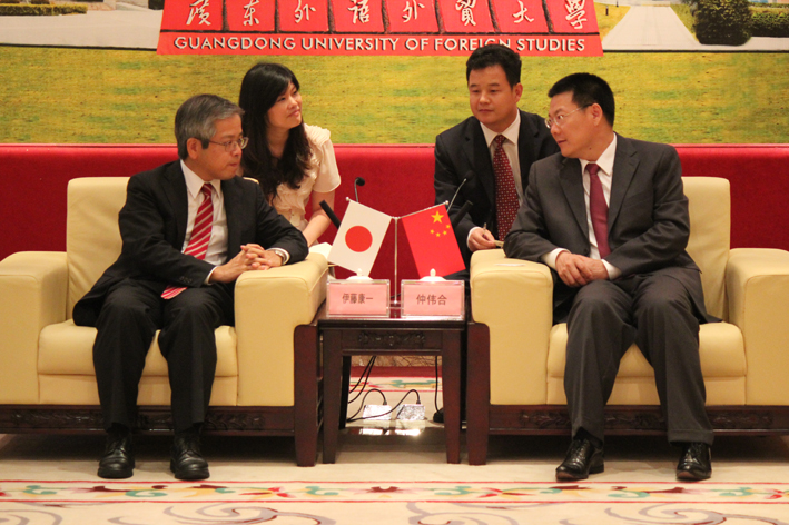 仲伟合首先对伊藤康一的来访表示了热烈的欢迎,并在介绍我校在国际化特色建设及日语学科发展方面取得的突出成就的同时,对日本总领事馆给予的大力支持与帮助表示了衷心的感谢。
