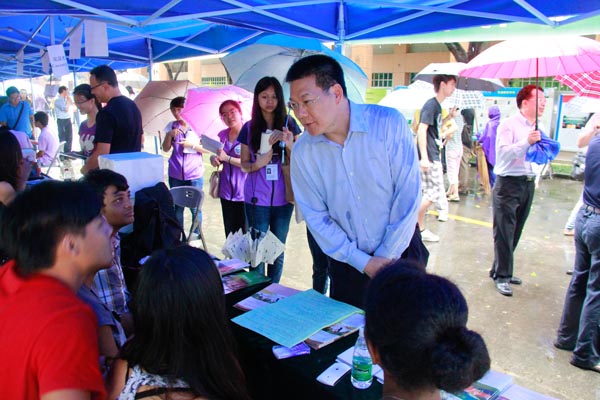 接受记者采访时,仲伟合说,今年是我校第十三年举办“大学开放日”,过去十二年积累下的宝贵经验让学校各个学院、单位很好地了解学生和家长们的实际需求,在此基础上做好充分合理的准备工作并有针对性地给学生家长们解疑答惑。虽然天公不作美,但对于真正想报考广外的考生而言,这对参加“大学开放日”的活动并没有太大的影响。“地球人都阻止不了考生报考广外”仲伟合笑谈到。