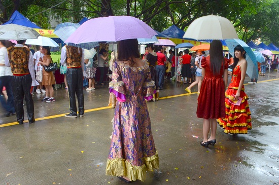 后勤保障:志愿者热情服务 异域服饰展现学院特色