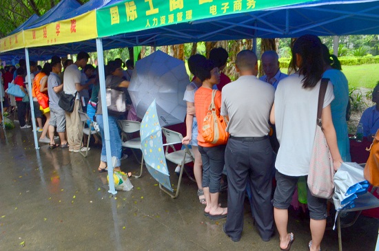 尽管天气不佳,但是咨询人数之多让英文学院外教邓肯有点惊讶。他认为英文学院最大的优势是英语水平高。现今,英语水平在方方面面都显得尤为重要,他说道。而就学生素质而言,他认为,以自己作为英美文学教师为例,学生要有对这门学科有兴趣,这才是最重要的。