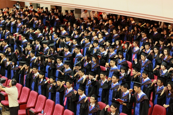 毕业生们握拳宣誓