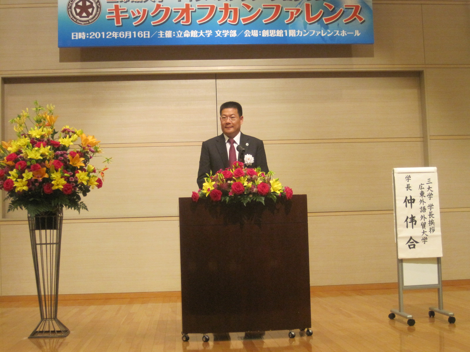 6月16日下午,仲伟合出席在立命馆大学举行的“亚洲校园项目”启动仪式。来自中日韩政府、企业、学校及社会组织的代表约200人参加了启动仪式。京都市市长门川大作、三校校长、中国驻大阪领事馆袁自煌领事、京都韩国教育研究院林锦银院长等参加了会议。仲伟合在发言中指出,亚洲校园项目获批标志着三校现有的合作成果以及未来的合作模式得到三国政府的充分肯定。在经济全球化的今天,国际化程度较高的三校将共同致力于推动学生、教师的国际流动,通过新的合作模式,培养具有领导力的国际化人才。