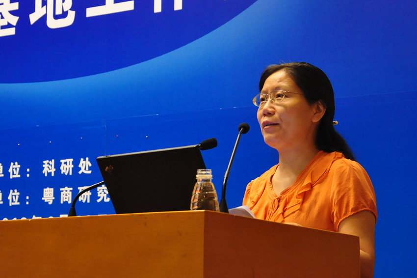 其他省级、市级、校级基地也接着进行了经验交流。外国文学文化研究中心教授王毓红、国际经济贸易研究中心主任陈万灵、翻译学研究中心主任莫爱屏、粤商研究中心主任申明浩、广东软科学基地负责人李青、广州国际商贸中心重点研究基地主任张昱、区域一体化法治研究中心教授朱最新围绕各自基地的建设概况、人员配置、研究方向、未来目标和存在问题作了相应的发言。