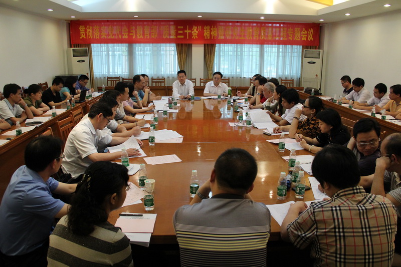 本网讯 6月12日上午,贯彻落实党代会与教育部“质量三十条”精神暨研究生教育质量工程专题会议在北校区第二会议室举行。校长仲伟合、副校长石佑启,研究生处处长袁泉、研究生工作部部长康为茂、各研究生培养单位负责人及分管研究生工作负责人、分管研究生德育工作负责人、研究生部(处)相关人员参加了会议。会议由石佑启主持。