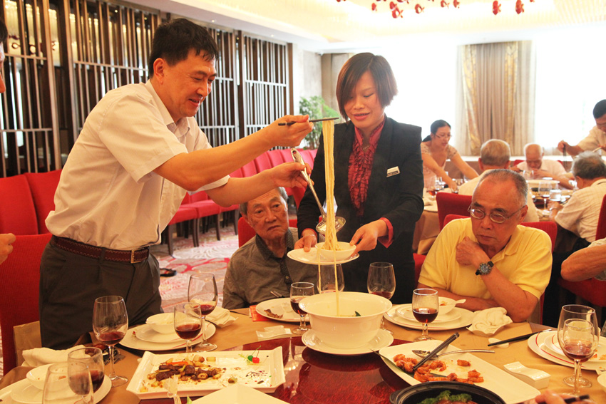 席间,隋广军、陈建平亲自为老同志夹起长寿面、敬酒祝寿并一道探讨了离休干部的养老保健、生活福利政策以及学校未来发展等问题。