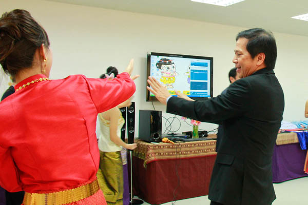 伟文·丘氏君与学生共舞泰国传统舞蹈