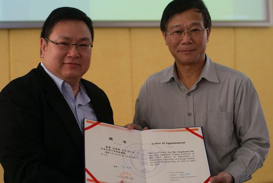陈建平向冼超舜颁发客座教授聘书
