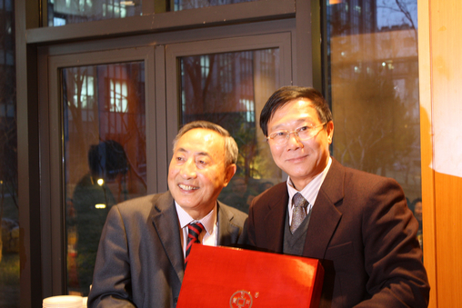 陈建平代表学校向胡教授赠送礼物