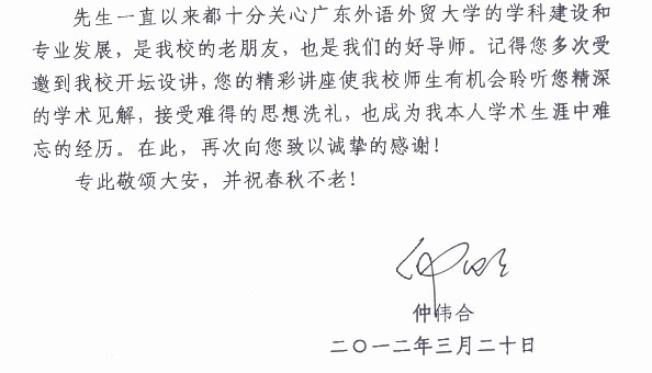 仲伟合校长贺信